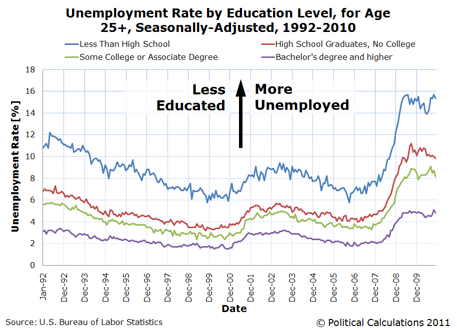 Second, they tend to be much less susceptible to becoming unemployed in economic downturns, at least if we go by unemployment rates. This relative employment stability then would be very attractive because it would translate into a more stable source of funding to support government spending programs.